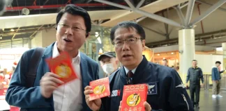 兩人開心合影!謝龍介拿到黃偉哲1元紅包